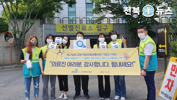 한편 같은 날, 전주화산체육관 선별진료소를 찾아 ‘Heart to Heart 릴레이’를 전개한 ASEZ WAO 회원들도 있었다. 진료소 관계자들은 성심껏 작성한 손편지와 다양한 간식으로 꾸린 응원키트 50개를 전달한 회원들을 반갑게 맞으며 정성 어린 손길에 크게 고마워했다.